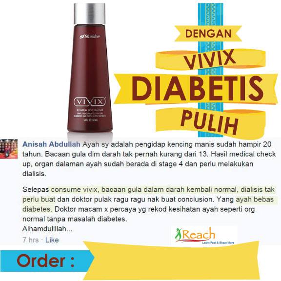 P/S : Nasihat ikhlas dari saya. Teruskan konsisten dengan pengambilan Vivix. Dalam pada itu jangan abaikan preskripsi ubat oleh doktor dan amalkan diet untuk pesakit diabetes betul-betul.